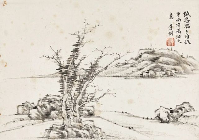 陈曾寿《临倪瓒竹石山水册》写于一九二五年,册耑署曰“遗禅”,自谓“偶临云林八幅”,实借倪迂隐逸自处之道,自喻遁世,不沾时政之俗,无乃遗民心境之写照。