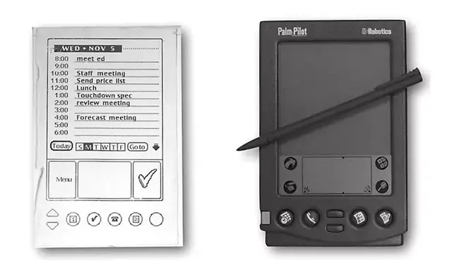 20世纪90年代中期,才华横溢的发明家和企业家杰夫·霍金斯提出了一个有关个人数字助理(PDA)的创意,而它最终变成了PalmPilot(见下图)。