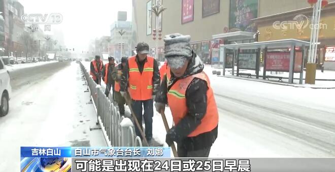 白山市气象台台长 刘娜:预计本次降雪天气过程在23日白天基本结束,22日白天开始气温自西向东明显下降,局部地区最低气温可能是出现在24日或25日早晨,一般在零下22℃到零下19℃左右。