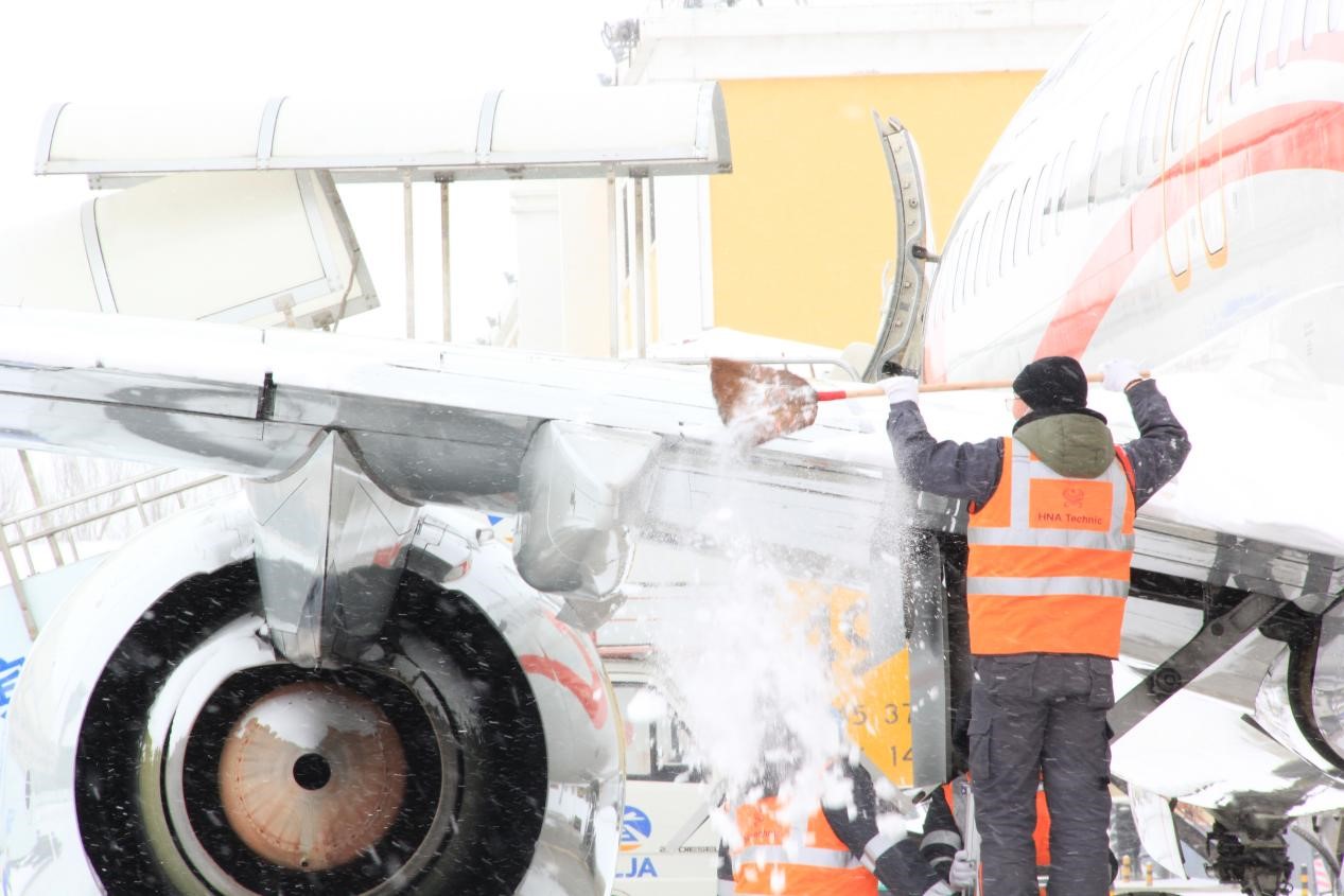 因持续降雪,哈尔滨机场于22日零时被迫关闭。凌晨3时,哈尔滨机场出动17台扫雪车对跑道、滑行道、机坪进行了清扫。针对飞机表面的积雪,机务部门提前对飞机表面进行了清扫,并实施飞机的除冰作业,以确保飞行安全。在哈尔滨机场各部门的通力合作下,10时18分,哈尔滨经太原飞往三亚的3U8545航班顺利起飞,航班陆续进出港。