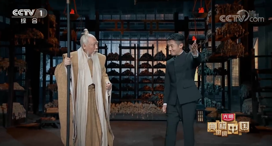 为提升节目质感,主创团队创新设计了“戏剧+影视+文化访谈”的多元叙事模式,突出戏剧化结构、影视化表达,让多种艺术形态交相辉映、兼容混搭,将晦涩难懂的典籍语言创造性转化为引人入胜的舞台故事,让书写在古籍里的文字“活”起来。老戏骨倪大红将年逾九旬的“护书人”伏生的语速、神态、动作演绎到极致;李光洁一人分饰宋应星老中青三代,留下了袁隆平和宋应星跨越时空“握手”的难忘场面;王洛勇用一场极具感染力的泪别,诠释出《橘颂》中的浓浓家国情。这一切都在总台主持人撒贝宁担任的“当代读书人”角色引导下完成,其代入视角和共情能力对受众加深理解古籍内涵和精神大有裨益。同时,专家学者以“看剧人”身份现场解读,畅谈感受,更容易引发受众共鸣,开启一场兼具艺术熏陶和精神洗礼的文化之旅。