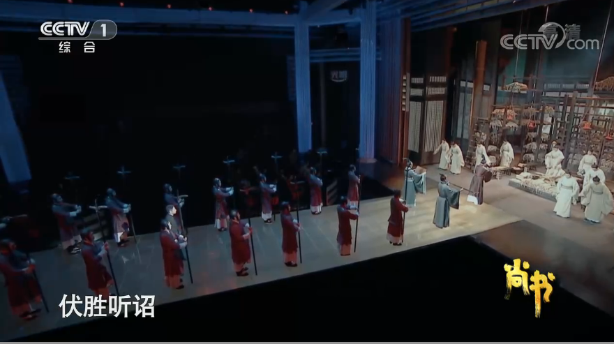 多空间、沉浸式讲述场营造视听新体验,“神仙节目”成了影视戏剧创作试验场。首先是综合运用环幕投屏、实时跟踪等新科技手段,开创性打造沉浸式四度叙事空间。以《尚书》为例,节目里共设置四个空间:一号舞台上演“大禹定九州”“牧野宣誓”等场面;二号舞台主要是伏生的书房;三号舞台由上层“大禹治水”的空间和下层伏生幼年读书的地方共同构成;三个舞台中间的甬道是连接古代典籍与当代现实的桥梁,成为第四个舞台。通过电视剪辑和270度旋转观众席的设计,四个舞台空间动了起来,现场观众和屏幕前的观众仿佛置身于一幕幕不同的历史场景中,时空的穿透力一下子变得真实可感。其次是融合电视文艺拍摄、戏剧拍摄、电影拍摄三种拍摄手段,以影视级置景、道具、灯光、分镜头脚本的标准,完成戏剧表演在电视节目中的电影级影像呈现。这种将技术、艺术、思想、内容叠加杂糅的探索体现了一种创造力,其所产生的深厚文化内涵、精品戏剧展现和电影级画面呈现,让更多受众感受到中国力量的迸发。