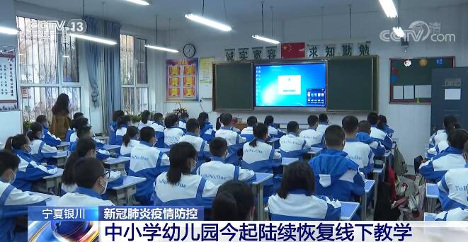 央视网消息:今天(11月22日)起,宁夏银川市各中学、小学、幼儿园陆续恢复线下教学。