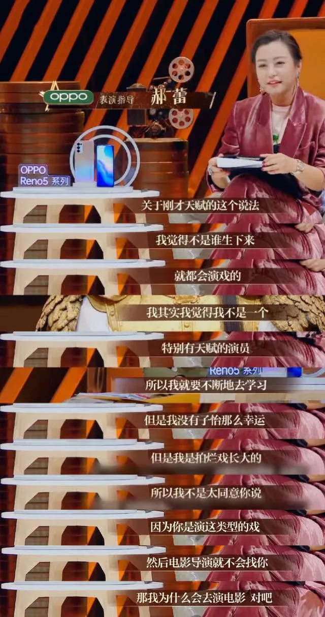 在《我就是演员》舞台上,郝蕾对“天赋与努力”也发表了自己的一番看法: