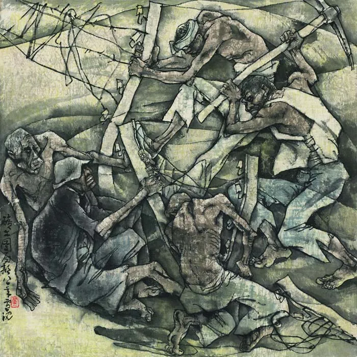矿工图(局部) 1981年 纸本设色 68.5X68.5cm