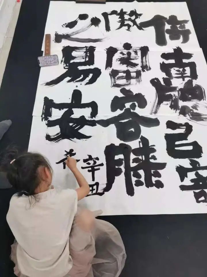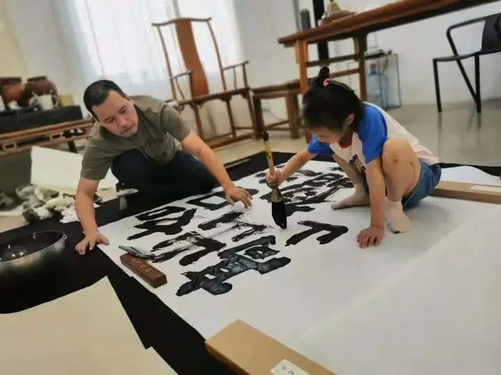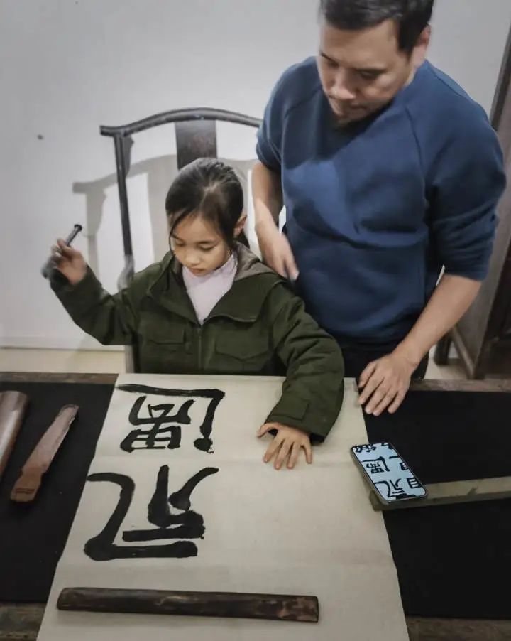 郑女士还说,女儿上的是公办学校,同学们的家长从事各行各业都有,忙起来难免陪伴孩子的时间就少一些,所以当小朋友们羡慕沈希夷可以跟着爸爸一起练习书法的时候,家里也会邀请同学们一起参与进来。