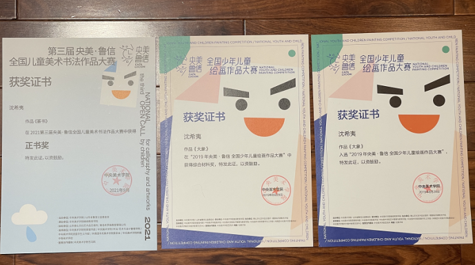 沈希夷喜欢画画、书法,和爸爸妈妈的引导分不开。