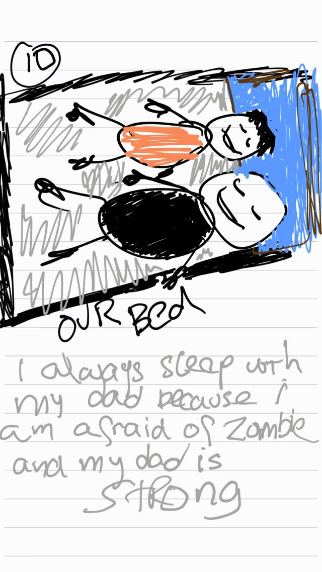 10. 我一直都跟爸爸睡在一起,因为我超害怕僵尸的,而爸爸很强壮哒。