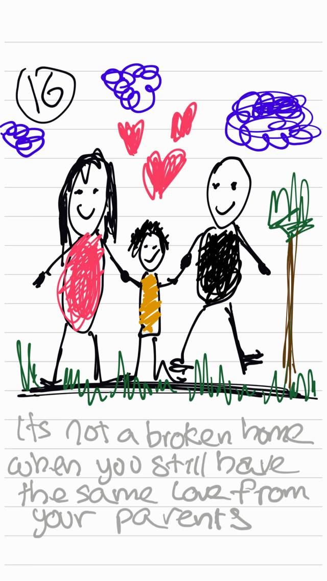 16. 所以当你能继续感受到爸爸妈妈对你的爱的时候,这并不一个破碎的家庭。