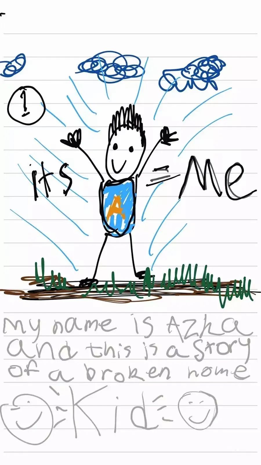 有一个印度尼西亚的小男孩儿,名字叫做 Azka,画了一组名为《Story of a Broken Home Kid 》的漫画,来讲述他的爸爸妈妈离婚的故事: