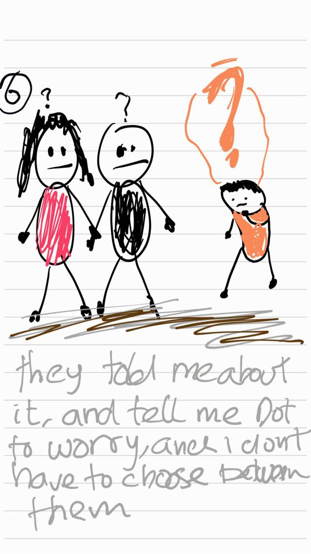 6. 他们把这件事情告诉了我,而且对我说不用担心,也不需要选择跟随着谁生活。