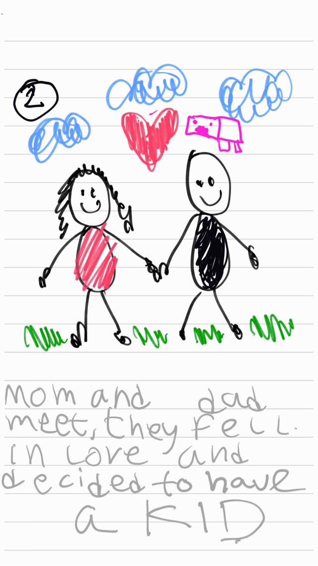 2. 我的爸爸妈妈相遇后,他们相爱了,并决定生个宝宝。