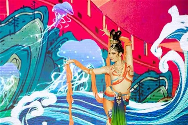 主委会工作人员介绍,场馆内6个主线展区不仅有多媒体展示,还有长城、红绸、大漠、沙丘、水车、大鼓等沉浸场景,同时呈现精彩文艺表演,以及观众互动产品展厅呈中国秀丽山河动态奔涌的超感视觉,寓意长江黄河张开双臂、怀抱万象山河,以泱泱大国的大美气度迎接八方宾客。