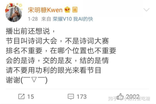 表示自己是带着以诗交友的心态去参加节目的,结果怎样不重要。