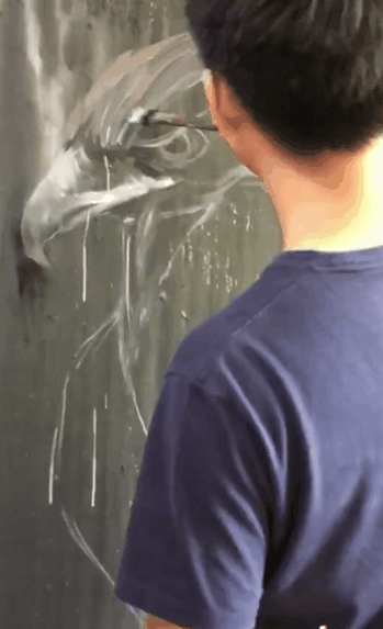 他擅长画动物神兽,凭借一幅《傲视天地》,一夜之间吸粉20万。