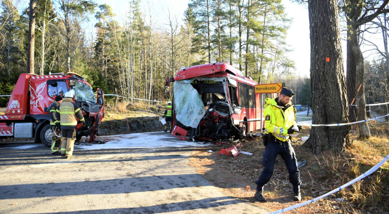 当地时间11月22日,瑞典电视台报道,22日上午一辆公共汽车在首都斯德哥尔摩以东的韦姆德与一辆拖车相撞,造成大约20人受伤,其中4人受重伤,一名重伤者是公交车司机。