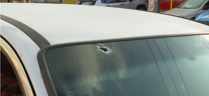 △被劫持人质的车窗上的弹孔(图片来源:巴西环球传媒集团)