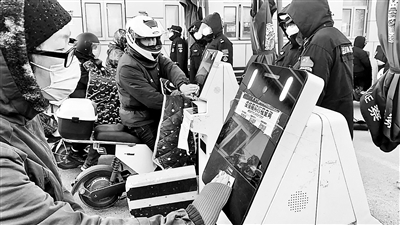 昨日早高峰,白庙北检查站临时将一条机动车道改为三条非机动车道,通勤人员只需刷身份证即可显示行程码及核酸检测记录,最快两三秒就能过检。 摄影/本报记者 叶婉