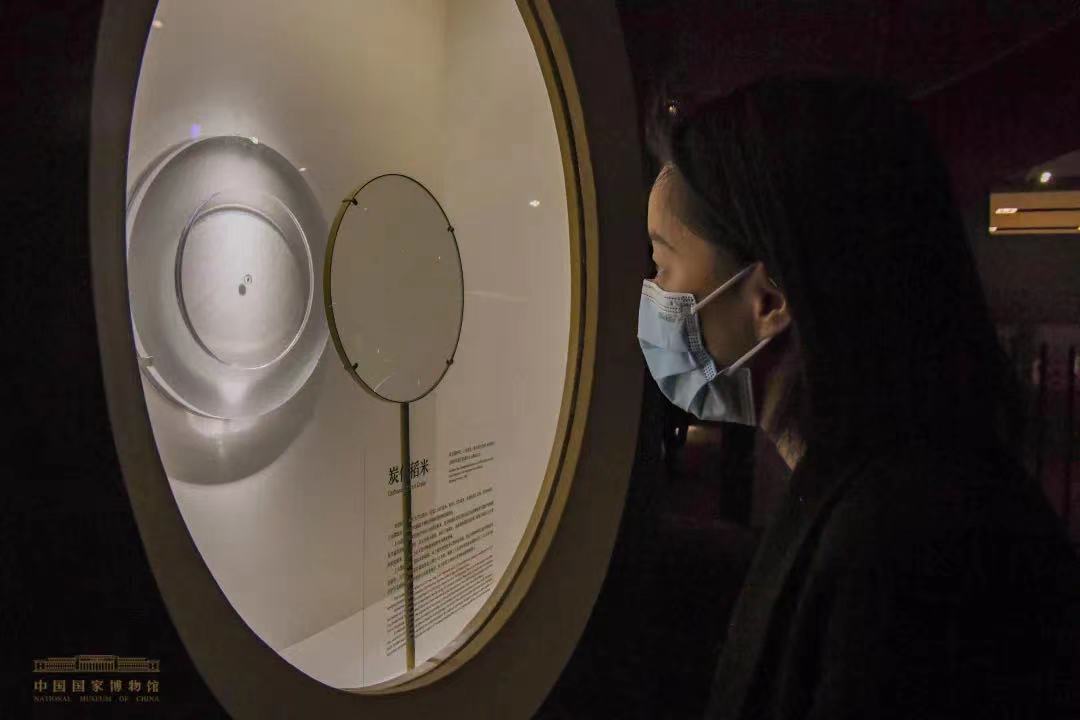 展览现场,一粒炭化稻米被放置于展厅显眼处,它粒长3.732毫米、粒宽1.667毫米、粒厚1.723毫米,长宽比值2.239。这粒稻米在上山遗址年代属于上山文化早期的灰坑(H461)中被发现,其长宽比相对于野生稻要小,经分析研究属于驯化初级阶段的原始栽培稻。上山遗址发现了包括水稻收割、加工和食用的较为完整的证据链,是迄今所知世界上最早的稻作农业遗存。这些发现让稻作栽培历史上溯至1万年前,刷新了人们对世界农业起源的认识。