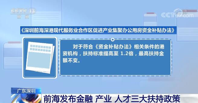 其中,《深圳前海深港现代服务业合作区促进产业集聚办公用房资金补贴办法》明确,对于符合《资金补贴办法》相关条件的港资机构,扶持标准提高至1.2倍,最高扶持金额不变。