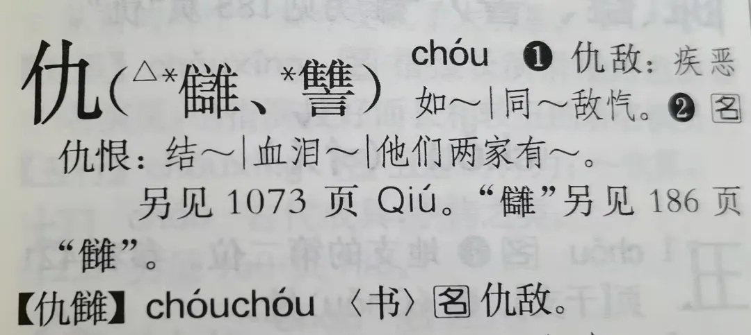 诶,“雠”怎么是“校对文字”的意思呢?(触及到小编的工作范围了^_^)翻到“仇”字页面,方才恍然大悟——