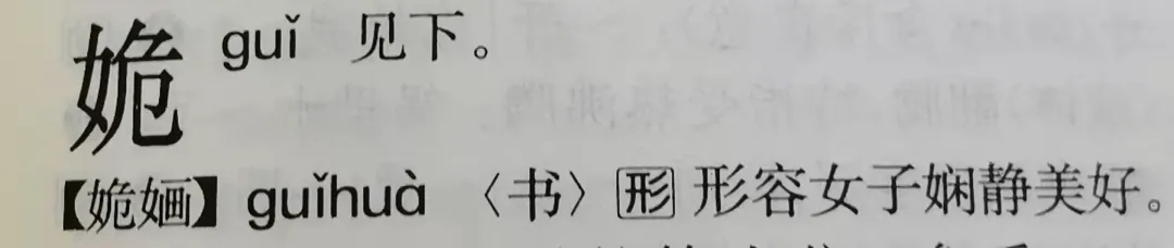 女子安娴幽静称为“姽”,兼能勇武奔驰称为“婳”。引申女子娴静美好。