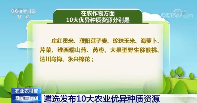 央视网消息:种质资源的好坏事关种业振兴全局,农业农村部今天(11月23日)发布10大农业优异种质资源。
