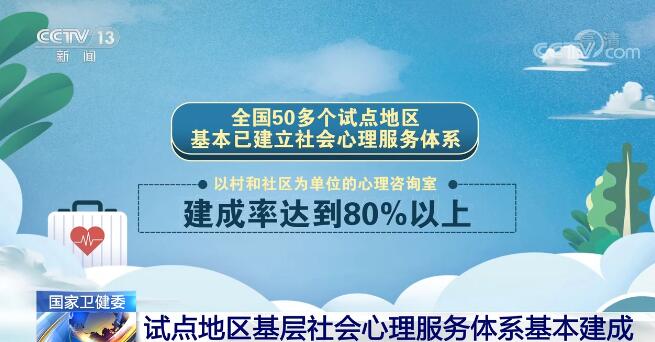 央视网消息:到今年年底,覆盖我国所有省份的社会心理服务试点工作正式收官,下一步将把试点经验向其他城市推广,在全国普遍开展社会心理服务体系建设。