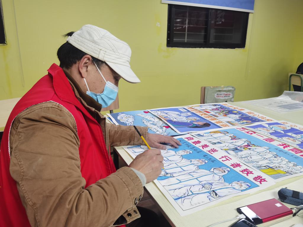 成都市民李在荣为一线抗疫工作者创作漫画。新华社记者 李倩薇 摄