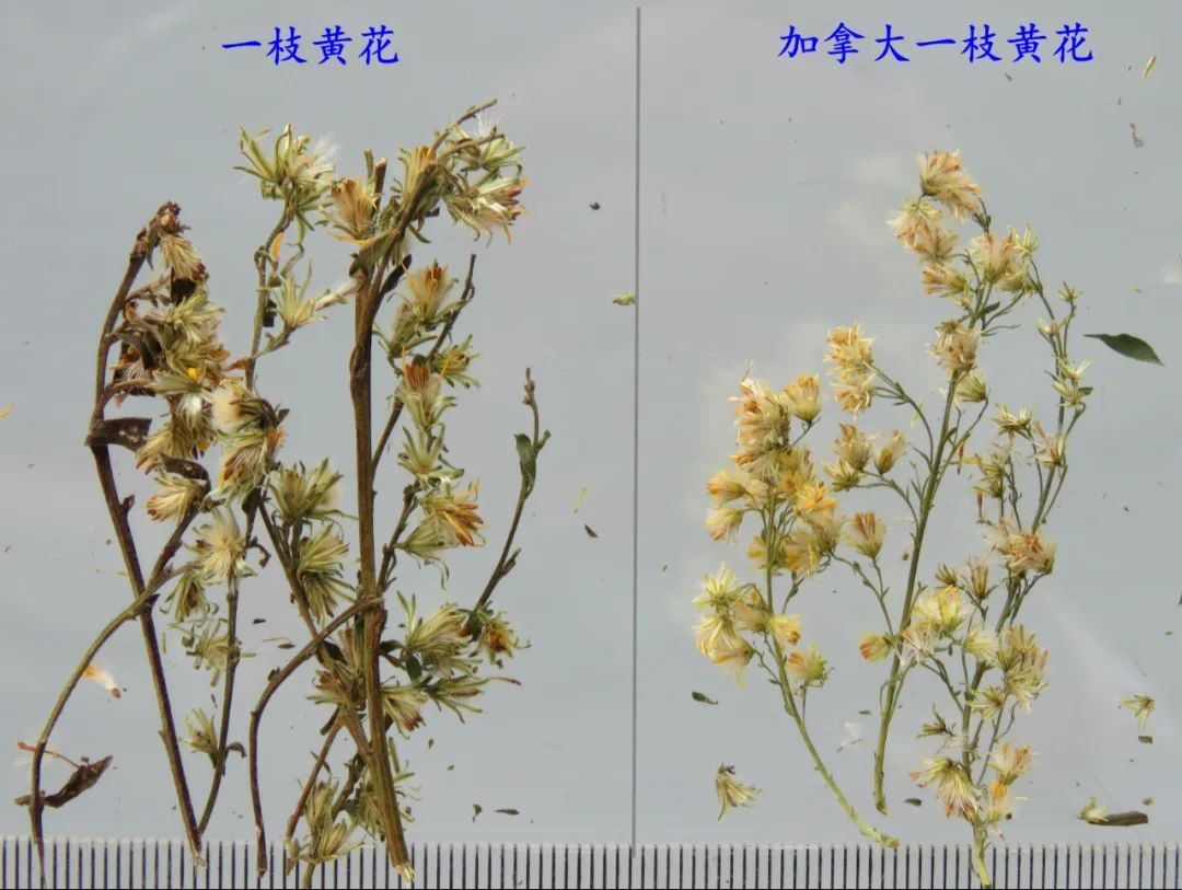 一枝黄花和加拿大一枝黄花花枝对比 图片来源;冬凌草