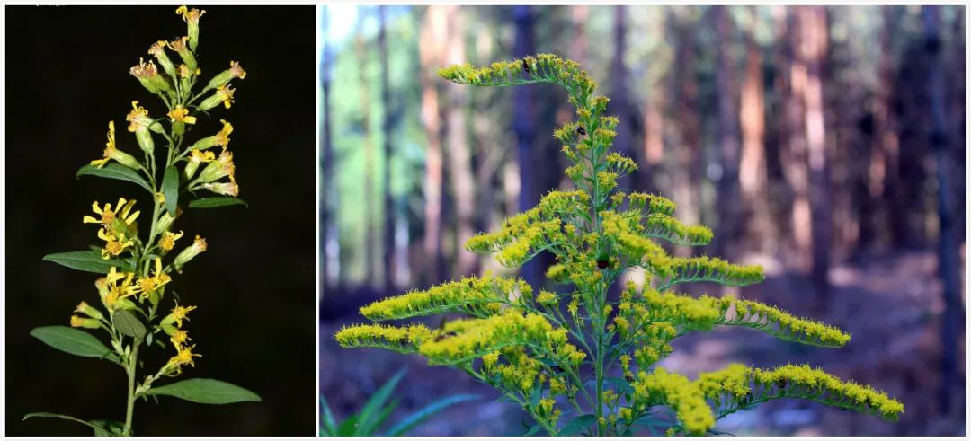 一枝黄花(左);加拿大一枝黄花花序(右)对比
