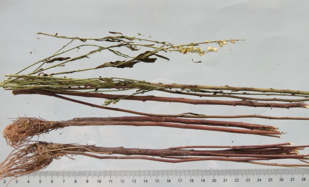 另外两者在根上也有一定区别,一枝黄花为深根植物,无明显根状茎,须根纤细较长。而加拿大一枝黄花,为浅根系植物,根状茎发达,须根较粗短。由于商品中很少有根,便不再做区分。(可能为多茬采收,及带根容易导致灰分或酸灰不合格)