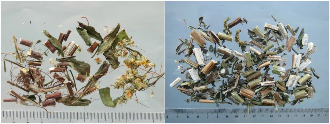一枝黄花(左)和加拿大一枝黄花(右)饮片对比 图片来源:冬凌草