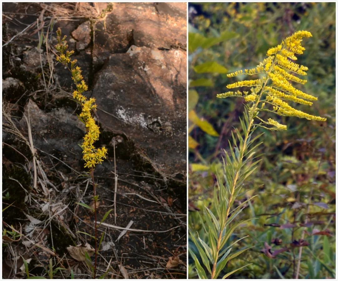 另外毛果一枝黄花还有一个寡毛(瘦果上部无毛或近无毛)变种,称为寡毛毛果一枝黄花。因该种多分布东北兴安一带,又名兴安一枝黄花 Solidago virgaurea var. dahuric。