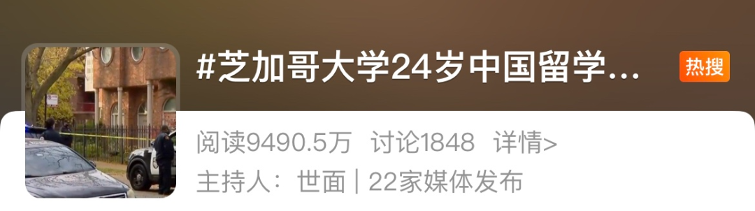 短短几小时,#芝加哥大学中国留学生被枪杀#的新闻引爆国内互联网。
