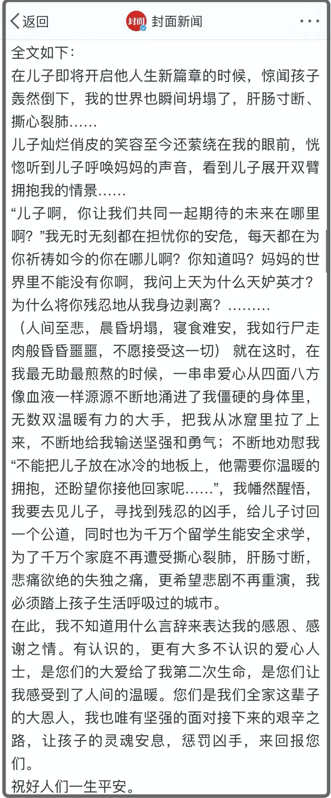 这位伟大的母亲,在万分悲痛面前仍旧不忘感谢别人的温暖。