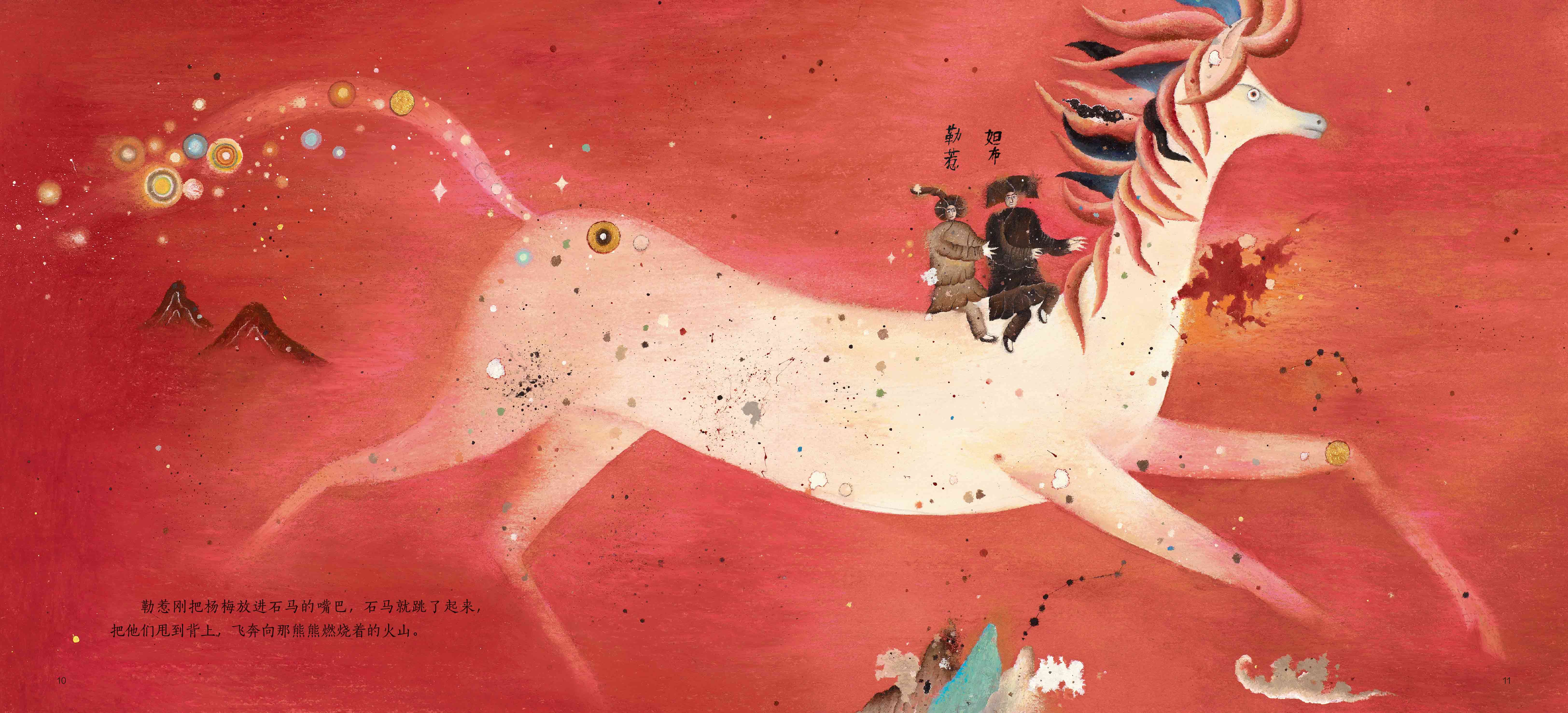 “我会把这本书定义为文化绘本,不只是在讲故事而已,连图画都能将读者带回历史的现场,让读者沉浸在中华文化所带给读者的历史氛围,这并非随意能做到,但是这本图画书做到了,属于中国的故事、哲思、文化、绘画艺术,每个地方都不马虎。”著名阅读推广人林文宝评论道。较为有趣的是,在每幅插画之中,使用手写字标注“妲布”与“勒惹”,仿效中国传统“绣像”的概念,非常特别。