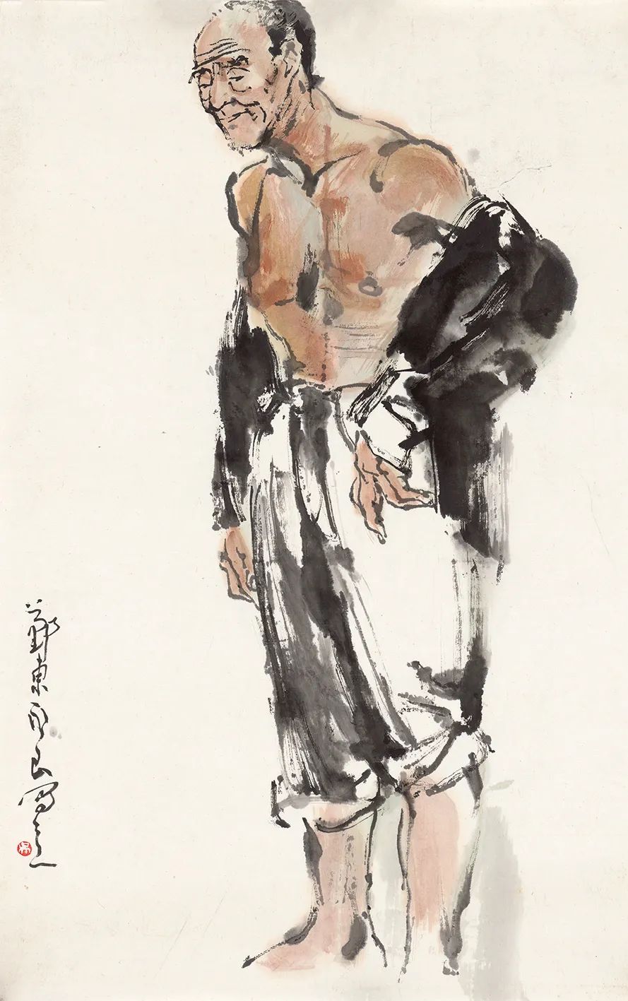 吴永良先生又是中国美院中国画教学的名师。他较早感悟到从硬笔到软笔、从素描到水墨之间的过渡训练,从而率先提出意笔线描的教学。以吴先生善笔尚意的禀赋与识见,吴先生提出这一课程是令人信服的。在我看来,这不仅是一门重要的转换性课程,更是中国画教学的核心内涵。意与线,从于心而出于手。心手合一,尽在毛笔的应用之上。此即一画之理。我想,不仅是吴先生的教学,吴先生的人与艺都是中国美院人物画教学改革与提高的、可资我们不断研学的榜样。