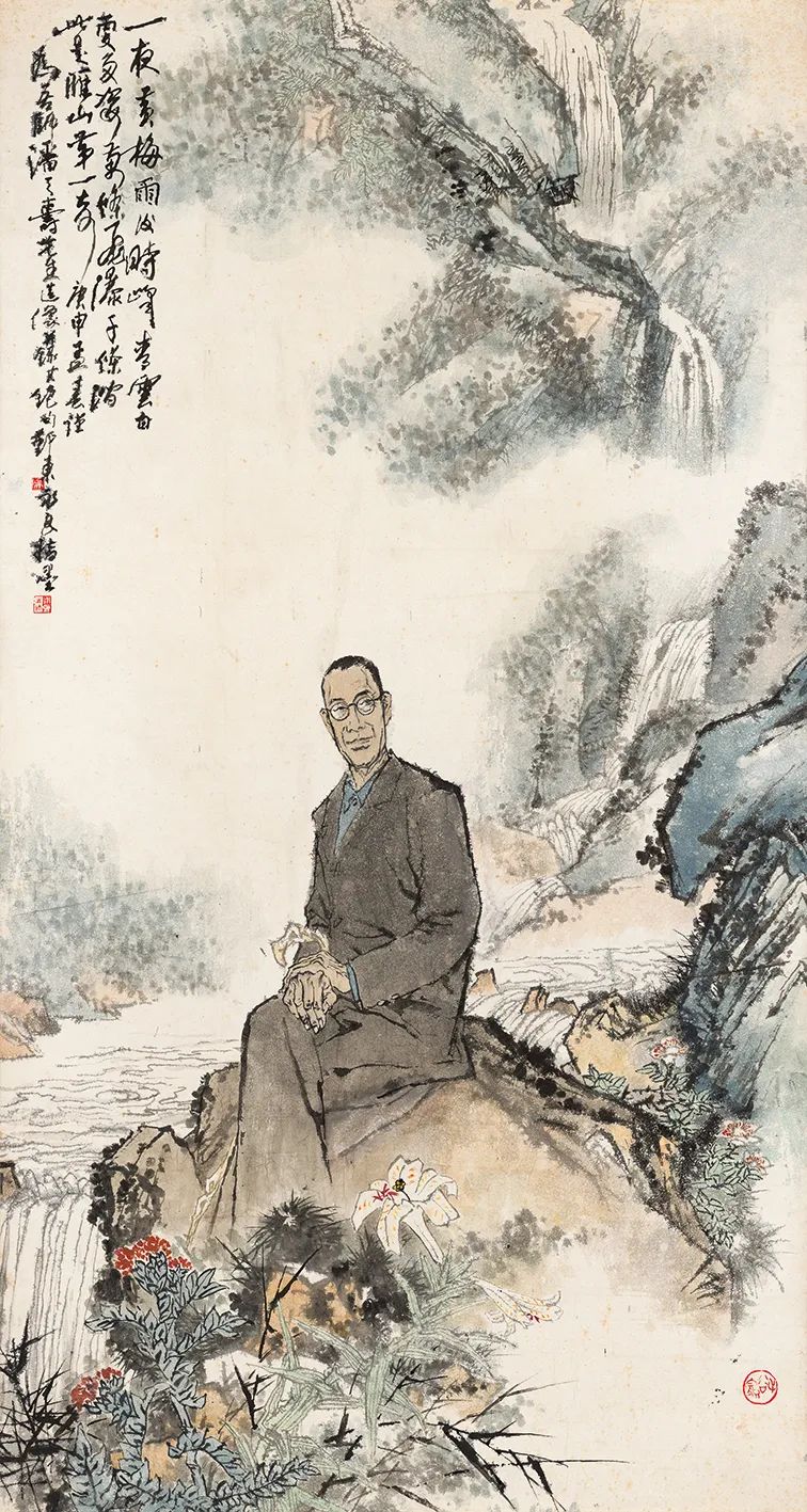 吴先生还能墨。《栖霞暮霭》就是以黄宾虹先生独特的黑密厚重,絪缊而成一个墨韵苍润的世界。他的两张吴昌硕,《芜园梦萦》极尽润泽,《破荷亭长》却枯湿苍润,活写颓然自适的诗意。墨色能苍能润,干渴自如,让每画俱有新境。吴先生画大量的诗意小品,以淋漓水晕、翩跹墨彩,写无数杨柳岸、水歌头、山微云、天欲雨的诗画境界。吴先生也因此而能彩。他晚年旅居南洋所绘的一系列风情绘画,场面宏大,人物逼真,都赋了浓彩,呈现一派夺目的异域风情。