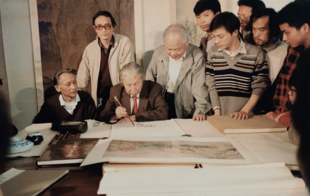 1989年,陆俨少先生进行教学示范