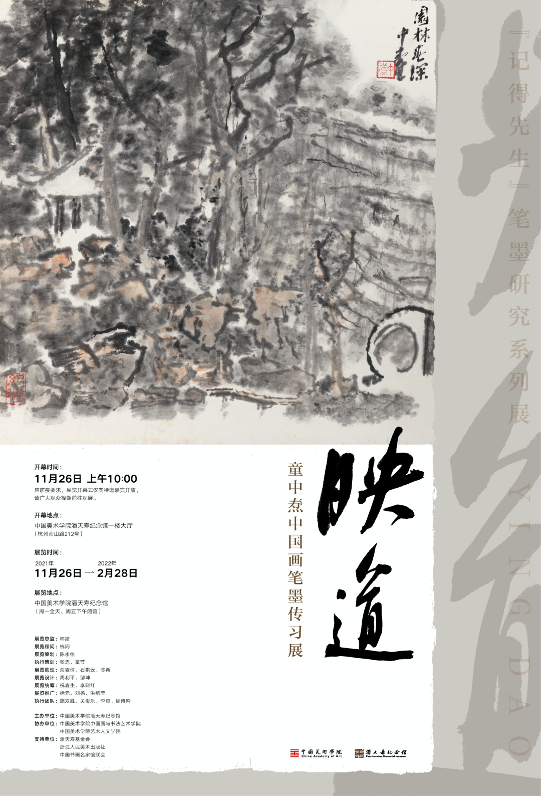 童中焘先生认为,“笔墨”是中国画艺术表现的最大特点,中国画的艺术表现终极目的是体道、悟道、行道。故本次展览以“映道”为题,不仅为展现中国画所追求的“道”,亦展现中国画笔墨的传承之道、开拓创新之道。