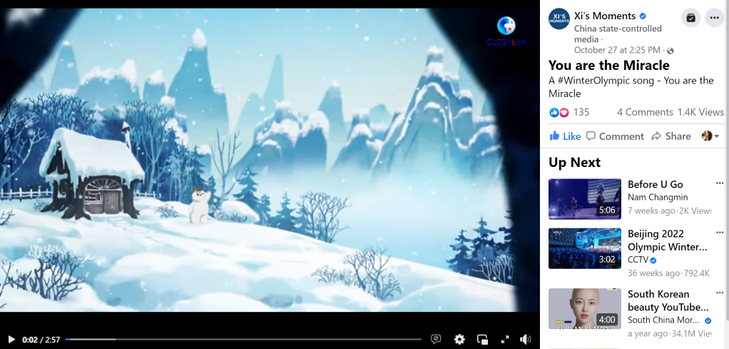 举世瞩目的2022年北京冬奥会还有两个多月就开幕了。一首由国社原创,奥运冠军杨扬、丁宁、林跃领衔演唱的迎冬奥英文MV《你就是奇迹(You Are the Miracle)》在海内外网络迅速走红,发布一个月以来,在各社交媒体平台热度颇高,受到大量海外网友的喜爱,在优兔、脸谱、推特等海外社交平台获得广泛关注,浏览量超千万次。北京冬奥组委第一时间在海外官方账号转发,海外网友留言表示“终于等到了!”