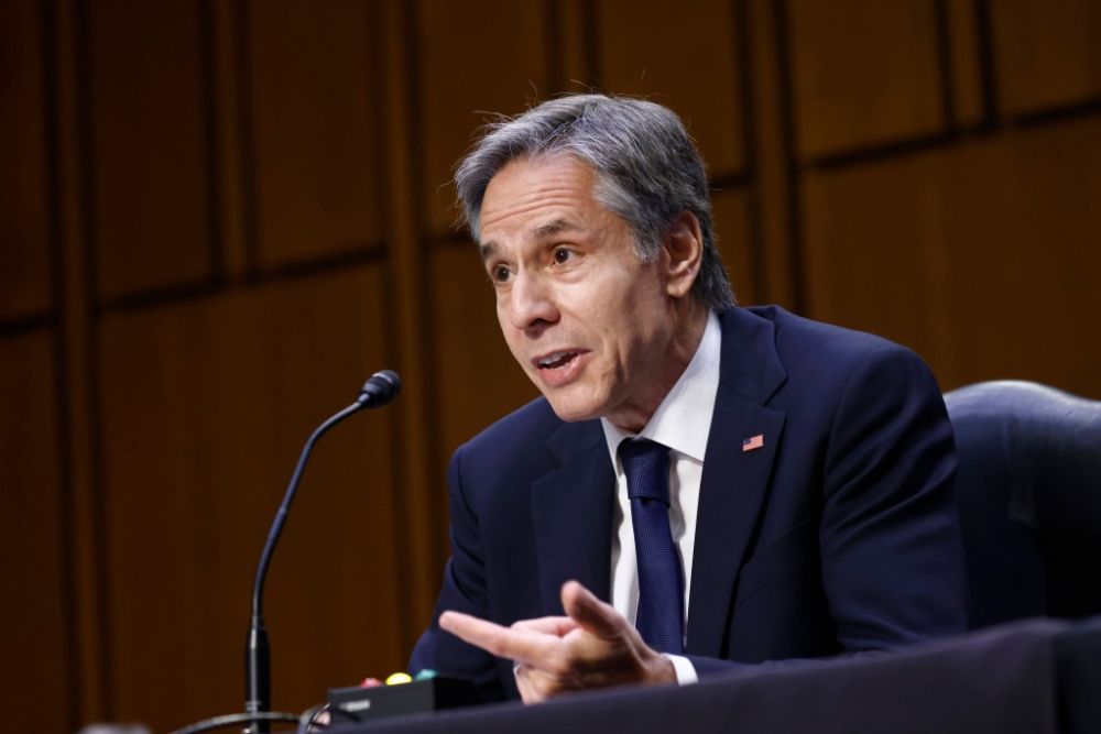 6月8日,美国国务卿布林肯在华盛顿出席美国会参议院拨款委员会的听证会。(新华社发,沈霆摄)