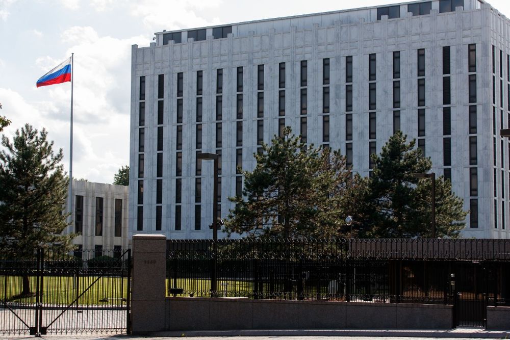 这是2018年8月8日在美国首都华盛顿拍摄的俄罗斯驻美国大使馆外景。(新华社发,沈霆摄)