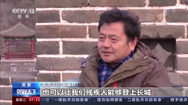 北京市民 祁春祥:中国人每一个人都想着去登上长城,但是从我们来说的话,自身条件约束,就是上来太难了,现在有无障碍了,也可以让残疾人能够登上长城,体验一下不到长城非好汉的感觉。