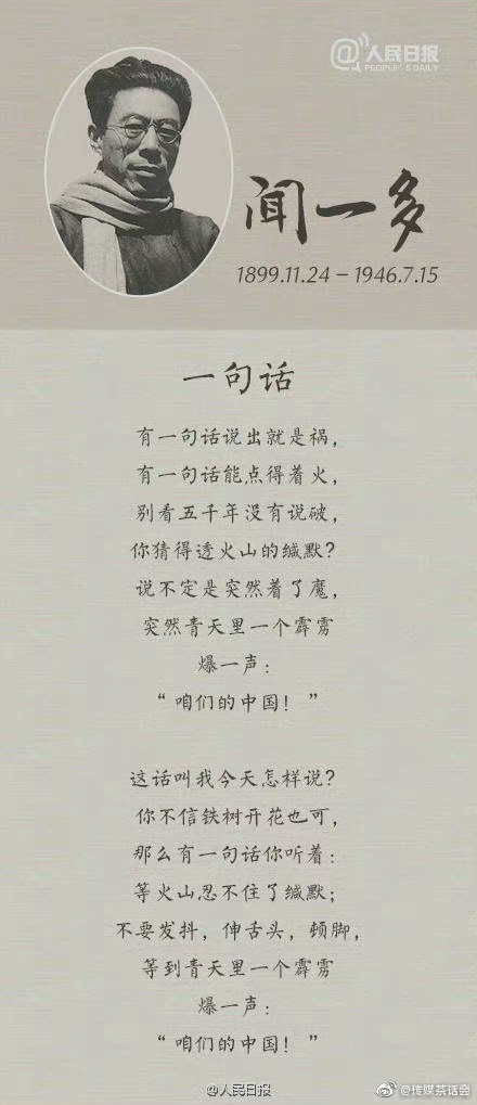 他是著名的诗人学者,更是坚定的民主战士。1946年7月15日,他发表了最后一次演讲,不料当天惨遭特务暗杀。朱自清评价他:“你是一团火,照彻了深渊;你是一团火,照明了古代;你是一团火,照亮了魔鬼,烧毁了自己……”闻一多诞辰122周年,他的这9首诗,你都读过吗?