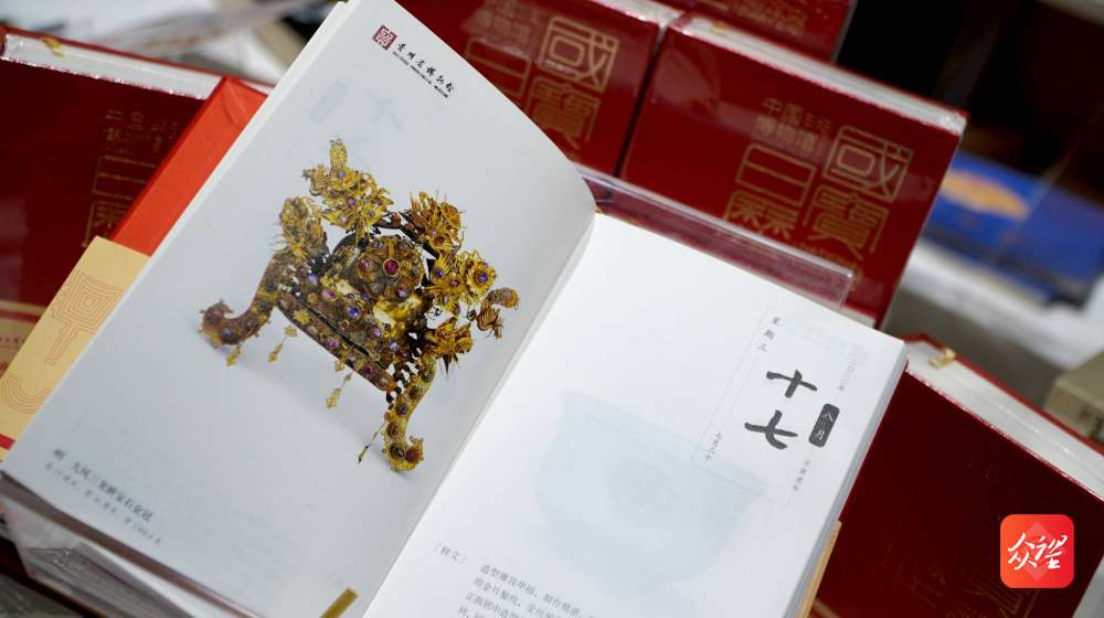 “除了镇馆之宝铜车马、韩琦楷书书札卷、九凤三龙嵌宝石金冠,还有代表性文物立虎辫索纹耳铜釜、乌沙安顺龙化石、遵义型铜鼓,及张泽、张大千合作的松虎立轴,红军买猪条等红色文物。”江钊表示,本次入选《国宝日历》文物,涵盖化石、青铜、金银器、陶瓷、玉器、书画、民族等各个文物门类,以此满足读者“碎片化的知识日读”的需求。