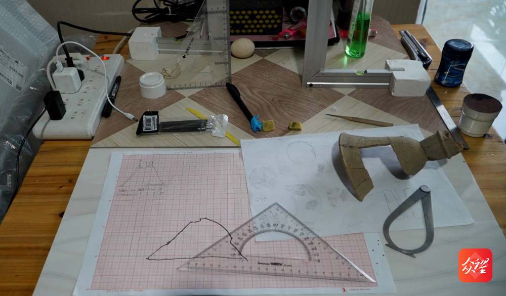 “前者大多是在野外完成,而后者大多都在室内完成。”韩继泽说,大到遗址轮廓,小到每件器物,都需要绘制成图,以“毫米之间”的误差,给遗物做信息“扫描”。