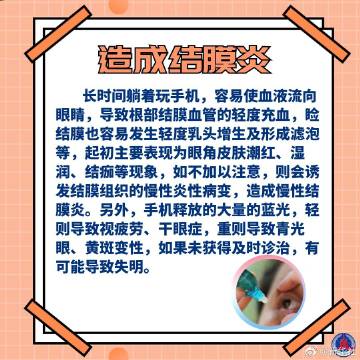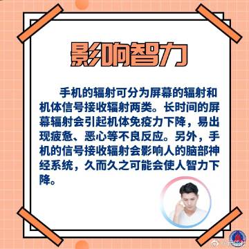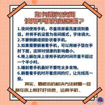 【速转,#6招帮你应对手机危害#】生活中有一群人被称为“深夜手机党”。他们睡前习惯躺在床上玩手机,而迟迟不肯睡觉。虽然玩手机看似能带来很多乐趣,然而#长久玩手机可能让人智力下降#。还有哪些危害?该如何应对?快戳图了解↓↓(来源:健康报 设计:陈露缘)