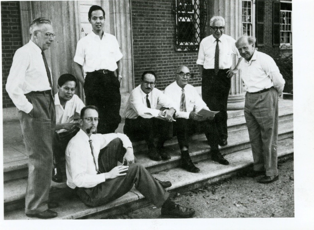 图中左起:塞格雷、杨振宁、李政道、麦克米伦、劳伦斯、拉比、海森堡